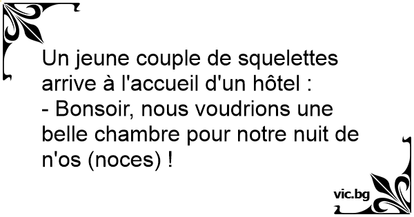 - Bonsoir, nous voudrions une belle chambre pour notre nuit de n'os (noces) !