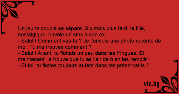 Un jeune couple se sépare. Six mois plus таrd, la fille, nostalgique, envoie un sms à son ex :