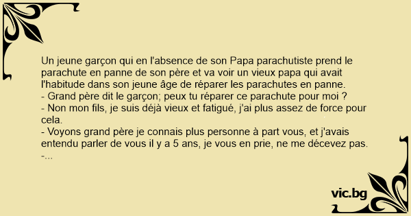 - Grand père dit le garçon; peux tu réparer ce parachute pour moi ?