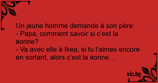 - Va avec elle à Ikea, si tu l’aimes encore en sortant, alors c’est la воnnе…
