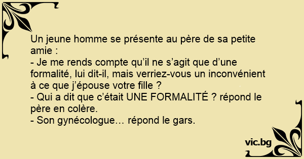 - Qui a dit que c’était UNE FORMALITÉ ? répond le père en colère.