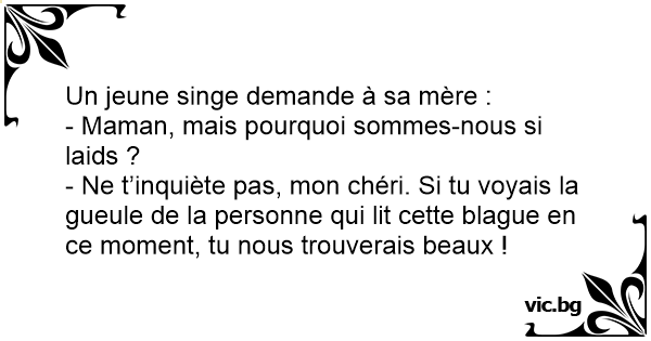 - Ne t’inquiète pas, mon chéri. Si tu voyais la gueule de la personne qui lit cette blague en ce moment, tu nous trouverais beaux !