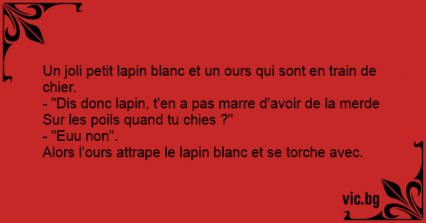- "Dis donc lapin, t'en a pas marre d'avoir de la merde