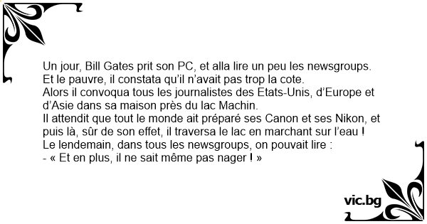 Un jour, Bill Gates prit son PC, et alla lire un peu les newsgroups. Et le pauvre, il constata qu’il n’avait pas trop la cote.
