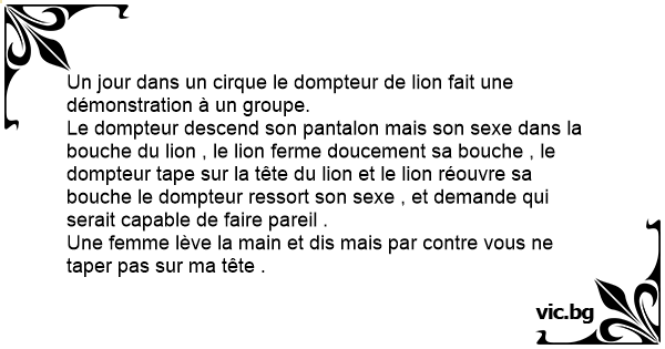 на арене цирка выступает дрессировщик львов. со словами алле-гопп,... Дресьор на лъвове показва номер: A guy walks into a bar with an alligator. It's about 10 feet long. В цирке. Выступает дрессировщик аллигаторов. Хищник открывает пасть, дрессировщик расстегивает ширинку и все свое хозяйство кладет в пасть аллигатору. Выступает мужик с крокодилом. Открывает крокодилу рот, кладет в него свое ``достоинство``, закрывает крокодилу рот и с размаху бьет крокодила по голове кулаком.... An Australian guy walks into a bar with a crocodile under his arm. He asks the bartender if he will give him free drinks if he shows he can put his penis inside the crocs mouth for 15 seconds without it getting bit off. A guy walks into a bar with a four-foot crocodile on a leash, following him like a dog. The barman says gruffly: "No pets allowed here!" The guy says, "But this is a trained crocodile. See what it can do!" He sets the crocodile on a table and hits it on both ears. The crocodile opens its jaws... Dans un cirque, un homme ouvre la gueule d'un crocodile et y insère la tête. Tout le monde applaudi. "-Encore plus fort" dit il... "-Je vais y insérer mon sexe" La il tend un drap, et à travers on devine ce qu'il fait et en effet, il insère son sexe dans la gueule du crocodile qui de plus, sert... A man limps into a bar with a cane and alligator. The bartender stops him and says "Hold on a second here - you can't bring that animal in here, they aren't allowed!" So the man says, "But my gator here does a really cool trick..." The bartender says "Well then, lets see!" So the man whips out... O atlético domador apresentava seu mais novo número com os leões. O domador punha os órgãos sexuais dele na boca do leão enquanto lhe aplicava fortes chicotadas. Grande sucesso. Todo mundo aplaudiu. Terminado o número, ele desafiou a plateia: — Alguém aí tem coragem de fazer a mesma coisa? Um... En man uppträdde på cirkus med en levande krokodil. Avslutningen av numret var en riktig rysare. Mannen drog ner gylfen och tog fram sin stolthet och placerade den mitt i gapet på krokodilen. Så stängde han krokodilens käft och stod alldeles stilla,... Facet w cyrku wychodzi na arenę z krokodylem. Staje na środku i kopie krokodyla w dupę. Krokodyl rozdziawił paszczę, a facet rozpina rozporek, wyciąga fiuta i kładzie krokodylowi na zęby. Potem bierze deskę i napierdala krokodyla po głowie. Krokodyl... Neue Attraktion in der Manege: Artist kommt auf die Bühne, holt seine Männlichkeit aus der Hose und steckt sie einem lebendigen Krokodil in den Rachen. Das Maul klappt zu - das Publikum hält den... Een man komt een café binnen met een krokodil. Hij gaat aan de bar zitten en legt de krokodil op de toog. "He!" roept de barman, "weg met dat beest, dat is levensgevaarlijk!" "Welnee," zegt de man,... En mann gikk inn på en pub i den australske outbacken med en krokodille under armen. Han stod opp på baren og skrek ut: «Hvis jeg stikker kødden og ballene mine inn i krokodillens munn, lar... Er komt een brede man met een grote krokodil de kroeg in lopen. Iedereen kijkt verbaast naar de krokodil en deinzen allemaal een stukje achteruit. De man zegt: “Er is geen reden om bang te zijn,... Er komt een man met een krokodil het cafe binnen en bestelt een biertje. De barkeeper ziet de krokodil en zegt: "Weg met dat beest, dat is veel te gevaarlijk." De man antwoordt: "Maar dat beest... Een man komt een café binnen met een krokodil. Hij zet het beest op de bar, trekt de kaken open, laat zijne broek zakken, doet zijn geslacht tussen de kaken van het beest en slaat vervolgens met... Komt er een brede vent de kroeg in. Met een hele grote krokodil. Iedereen valt dit meteen op en iedereen gaat dus ook aan de kant. De mensen zijn bang voor de man en voor de krokodil. waarop de man... A cirkuszban egy krokodilidomár világhírű produkcióját mutatja be. Gatyáját letolva, nem szégyellve hatalmas szerszámát, bedugja a krokodil szájába. Öklével hatalmasat üt az állat fejére, majd az... A fakír egy új mutatványt ad elő a színpadon. A közönség feszülten figyeli, miközben előveszi a nemi szervét, és beleteszi egy krokodil szájába, majd egy erőteljeset rácsap a krokodil fejére. A... Un dresor de crocodili apare in Fata unei multimi la gradina zoologica: - Si Acum dragilor o sa urmariti cat de bine e dresat acest Crocodil Infiorator! Langa el Pasea agale un monstru de crocodil.... Do baru vstoupí muž, který vede na vodítku aligátora. Postaví ho na stolek a začne vyvolávat: „Hej, vy všichni, uzavřu s váma sázku! Strčím tady tomu krokodýlovi do tlamy svoje genitálie, on... Vyksta cirko vaidinimas. Kulminacija - didžiulio dresiruoto krokodilo pasirodymas. Šviesos prigęsta, būgnai muša, dresiruotojas pasako "OLIA OP" ir krokodilas pražioja savo baisius nasrus. Tada... Cirkas. Pasirodo dresuotojas su krokodilu. Dresuotojas sušunka „OP!“ ir trenkia pagaliu krokodilui per galvą. Krokodilas išsižioja, ir dresuotojas įdeda savo organą jam į nasrus. Arenoje stovintis...