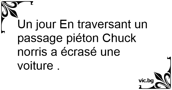 Un jour En traversant un passage piéton Chuck norris a écrasé une voiture .
