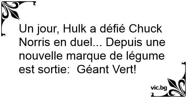 Un jour, Hulk a défié Chuck Norris en duel... Depuis une nouvelle marque de légume est sortie: Géant Vert!