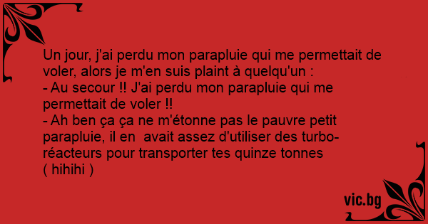 Un jour, j'ai perdu mon parapluie qui me permettait de voler, alors je m'en suis plaint à quelqu'un :