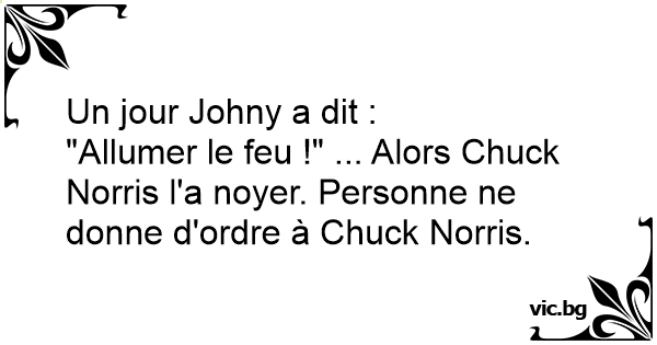 "Allumer le feu !" ... Alors Chuck Norris l'a noyer. Personne ne donne d'ordre à Chuck Norris.