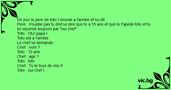 Un jour le pere de toto l';envoie a l'armée et lui dit