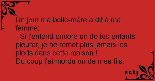 - Si j'entend encore un de tes enfants pleurer, je ne remet plus jamais les pieds dans cette maison !
