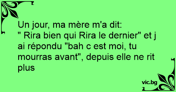 " Rira bien qui Rira le dernier" et j ai répondu "bah c est moi, tu mourras avant", depuis elle ne rit plus