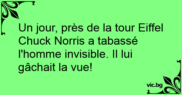 Un jour, près de la tour Eiffel Chuck Norris a tabassé l'homme invisible. Il lui gâchait la vue!