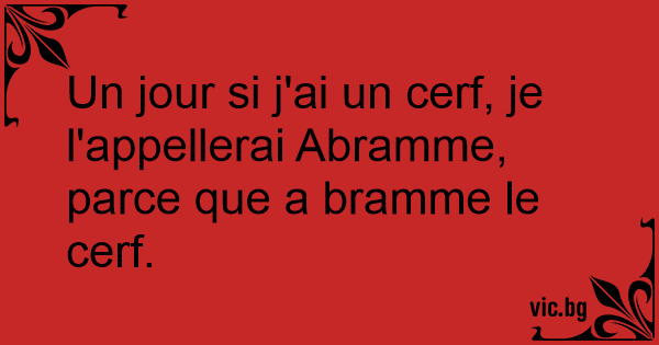 Un jour si j'ai un cerf, je l'appellerai Abramme, parce que a bramme le cerf.