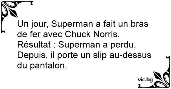Преди много години, Чък Норис и Супермен се хванали на бас, кой от двамата е по-силен.