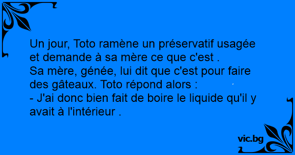 Un jour, Toto ramène un préservatif usagée et demande à sa mère ce que c'est .