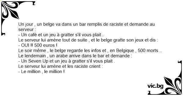 Un jour , un belge va dans un bar remplis de raciste et demande au serveur :