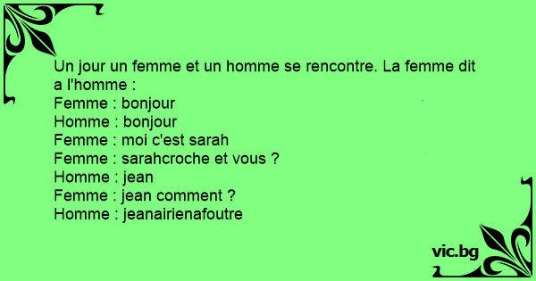 Un jour un femme et un homme se rencontre. La femme dit a l'homme :
