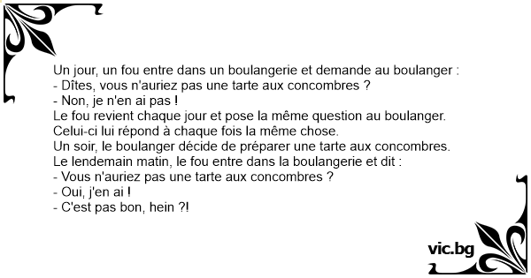 Un jour, un fou entre dans un boulangerie et demande au boulanger :