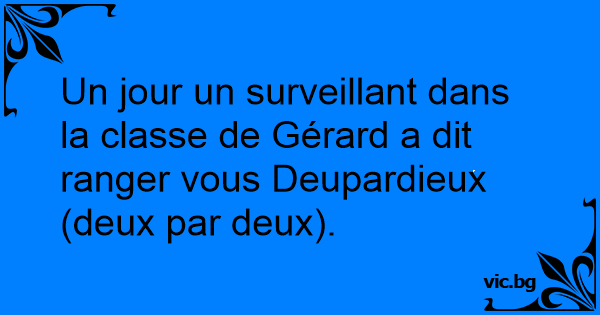 Un jour un surveillant dans la classe de Gérard a dit ranger vous Deupardieux (deux par deux).