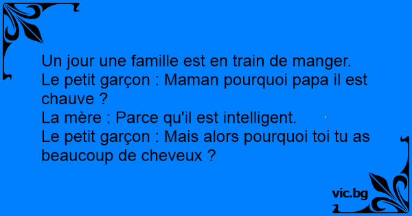 Le petit garçon : Maman pourquoi papa il est chauve ?