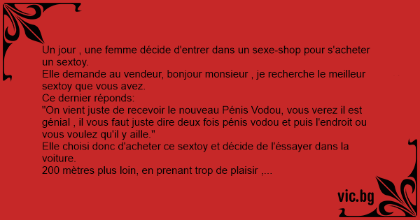 Un jour , une femme décide d'entrer dans un sexe-shop pour s'acheter un sextoy.