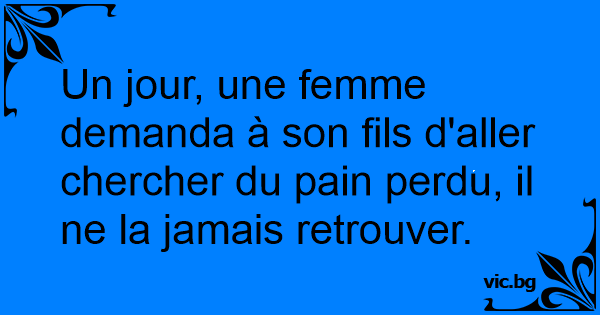 Un jour, une femme demanda à son fils d'aller chercher du pain perdu, il ne la jamais retrouver.