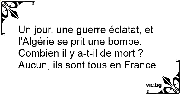 Un jour, une guerre éclatat, et l'Algérie se prit une bombe. Combien il y a-t-il de mort ?