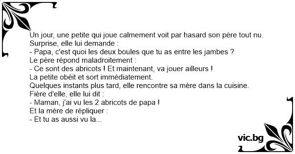 - Papa, c'est quoi les deux boules que tu as entre les jambes ?