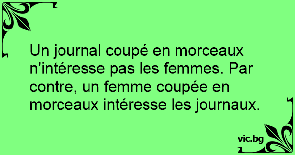 Un journal coupé en morceaux n'intéresse pas les femmes. Par contre, un femme coupée en morceaux intéresse les journaux.