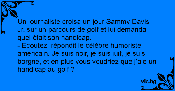 Un journaliste croisa un jour Sammy Davis Jr. sur un parcours de golf et lui demanda quel était son handicap.