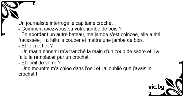 - Un marin ennemi m'a tranché la main d'un coup de sabre et il a fallu la remplacer par un crochet.