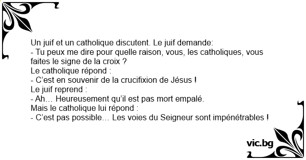 - Tu peux me dire pour quelle raison, vous, les catholiques, vous faites le signe de la croix ?
