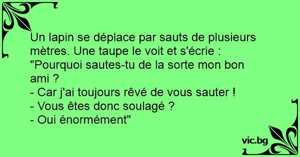 Un lapin se déplace par sauts de plusieurs mètres. Une taupe le voit et s'écrie :