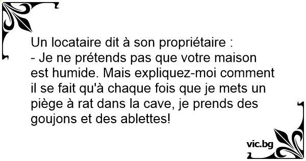 - Je ne prétends pas que votre maison est humide. Mais expliquez-moi comment il se fait qu'à chaque fois que je mets un piège à rat dans la cave, je prends des goujons et des ablettes!