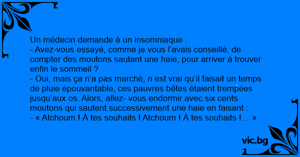 Un médecin demande à un insomniaque :