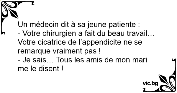 - Votre chirurgien a fait du beau travail… Votre cicatrice de l’appendicite ne se remarque vraiment pas !
