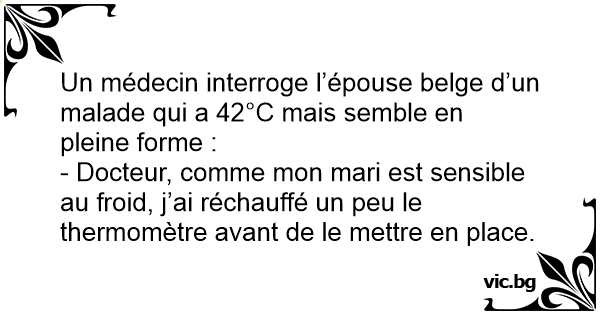 - Docteur, comme mon mari est sensible au froid, j’ai réchauffé un peu le thermomètre avant de le mettre en place.