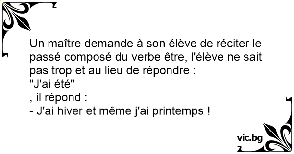 Un maître demande à son élève de réciter le passé composé du verbe être, l'élève ne sait pas trop et au lieu de répondre :
