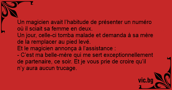 Un magicien avait l’habitude de présenter un numéro où il sciait sa femme en deux.