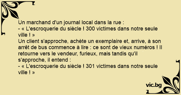 Un client s'approche, achète un exemplaire et, arrive, à son arrêt de bus commence à lire : ce sont de vieux numéros ! Il retourne vers le vendeur, furieux, mais tandis qu'il s'approche, il entend :