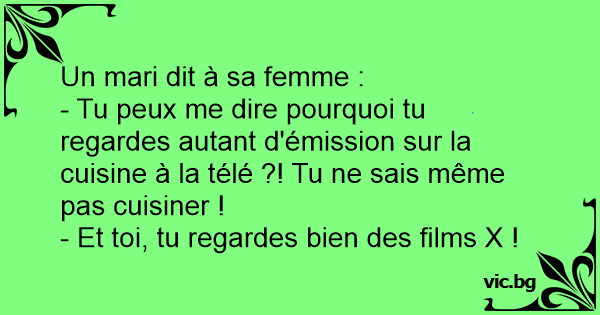 - Tu peux me dire pourquoi tu regardes autant d'émission sur la cuisine à la télé ?! Tu ne sais même pas cuisiner !