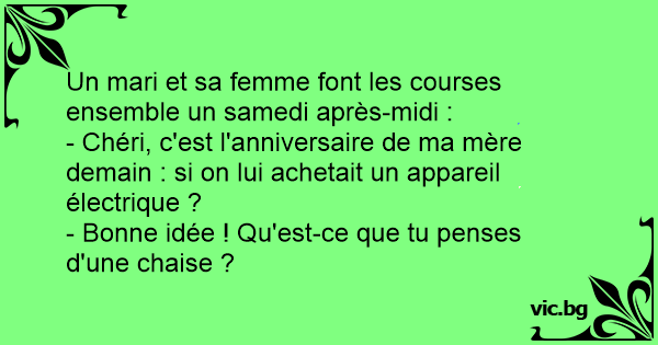 - Chéri, c'est l'anniversaire de ma mère demain : si on lui achetait un appareil électrique ?