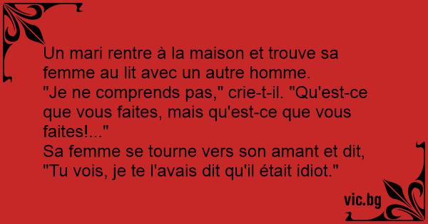 Sa femme se tourne vers son amant et dit, "Tu vois, je te l'avais dit qu'il était idiот."