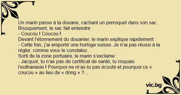 Un marin passe à la douane, cachant un perroquet dans son sac. Brusquement, le sac fait entendre :