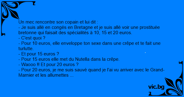 - Je suis allé en congés en Bretagne et je suis allé voir une prostituée bretonne qui faisait des spécialités à 10, 15 et 20 euros.