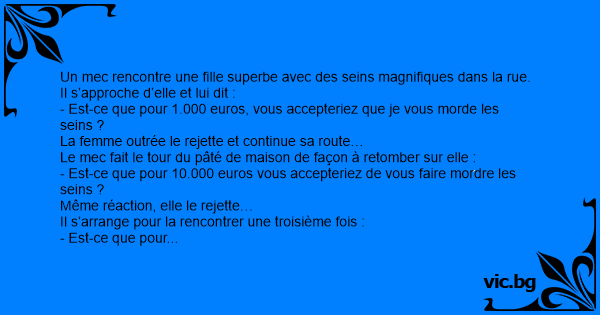 - Est-ce que pour 1.000 euros, vous accepteriez que je vous morde les seins ?