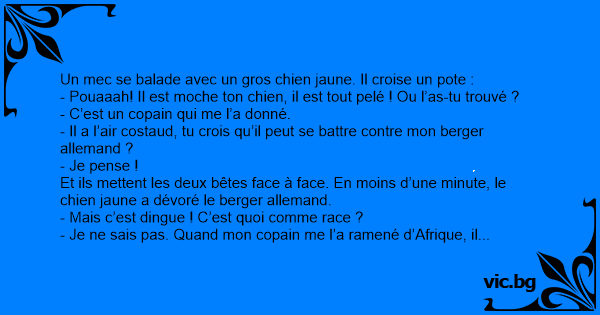 Un mec se balade avec un gros chien jaune. Il croise un pote :