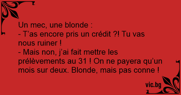 - Mais non, j’ai fait mettre les prélèvements au 31 ! On ne payera qu’un mois sur deux. Blonde, mais pas conne !