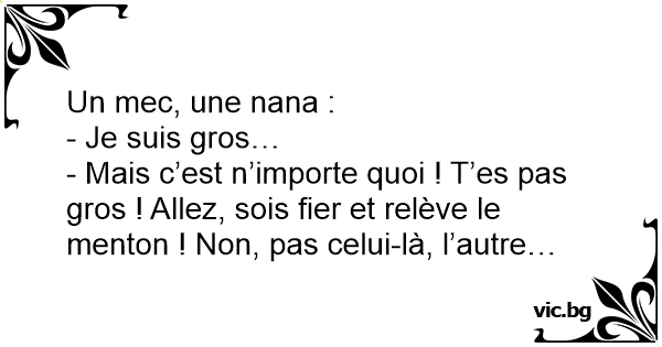 - Mais c’est n’importe quoi ! T’es pas gros ! Allez, sois fier et relève le menton ! Non, pas celui-là, l’autre…